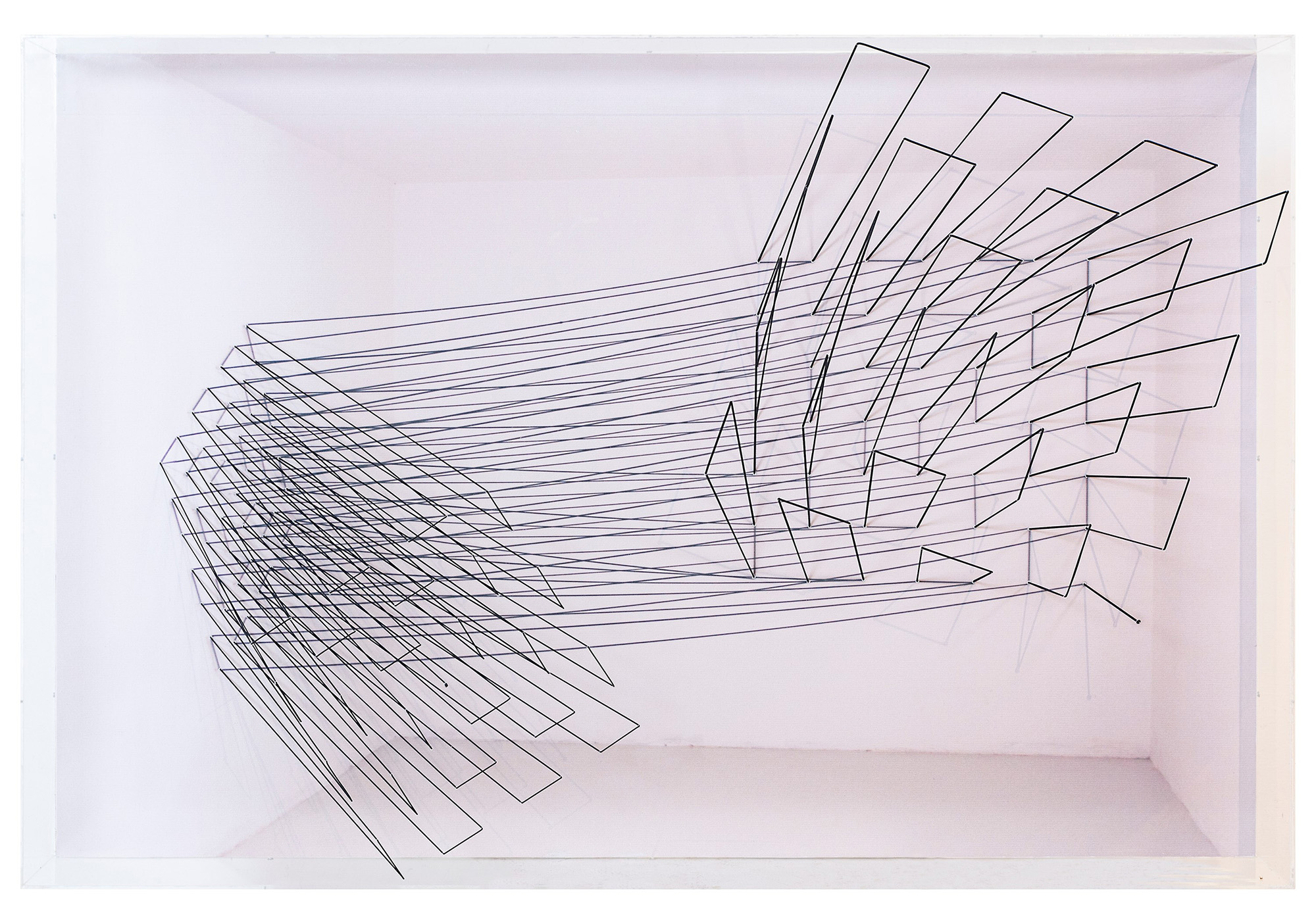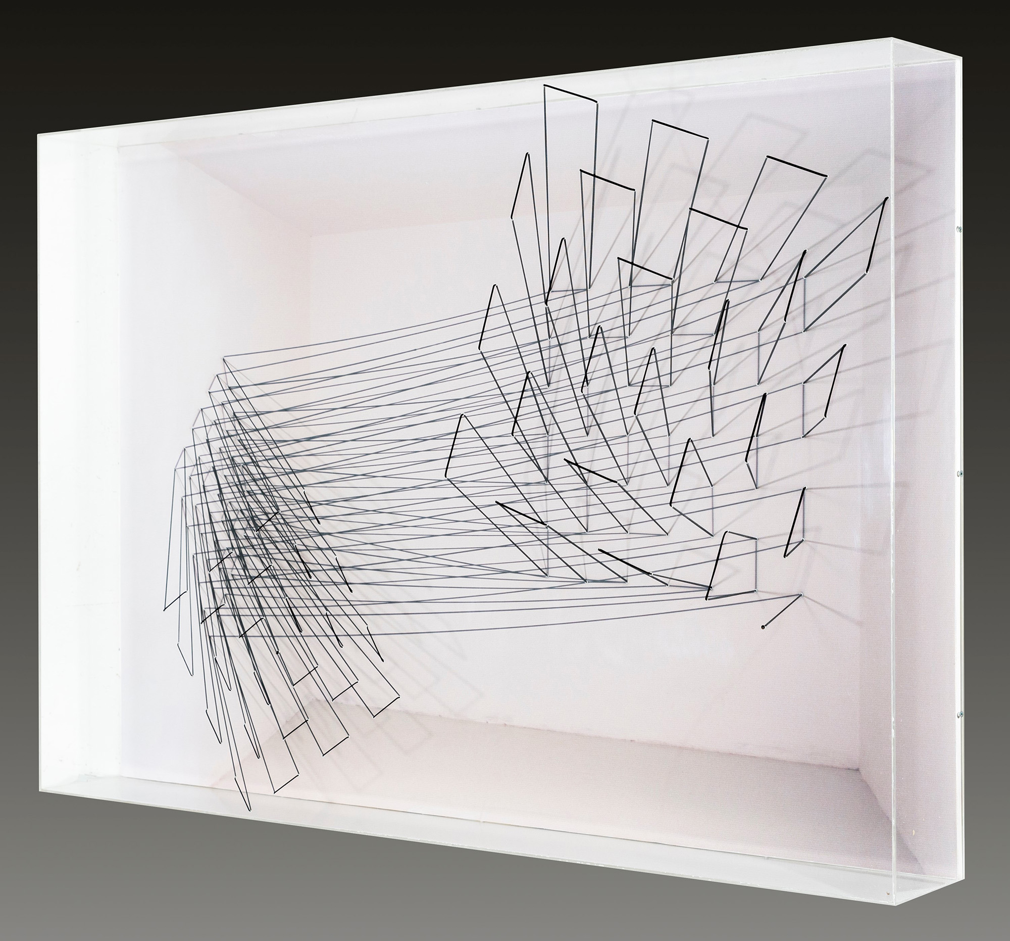 serigrafia su tela e filo elastico entro teca di plexiglass