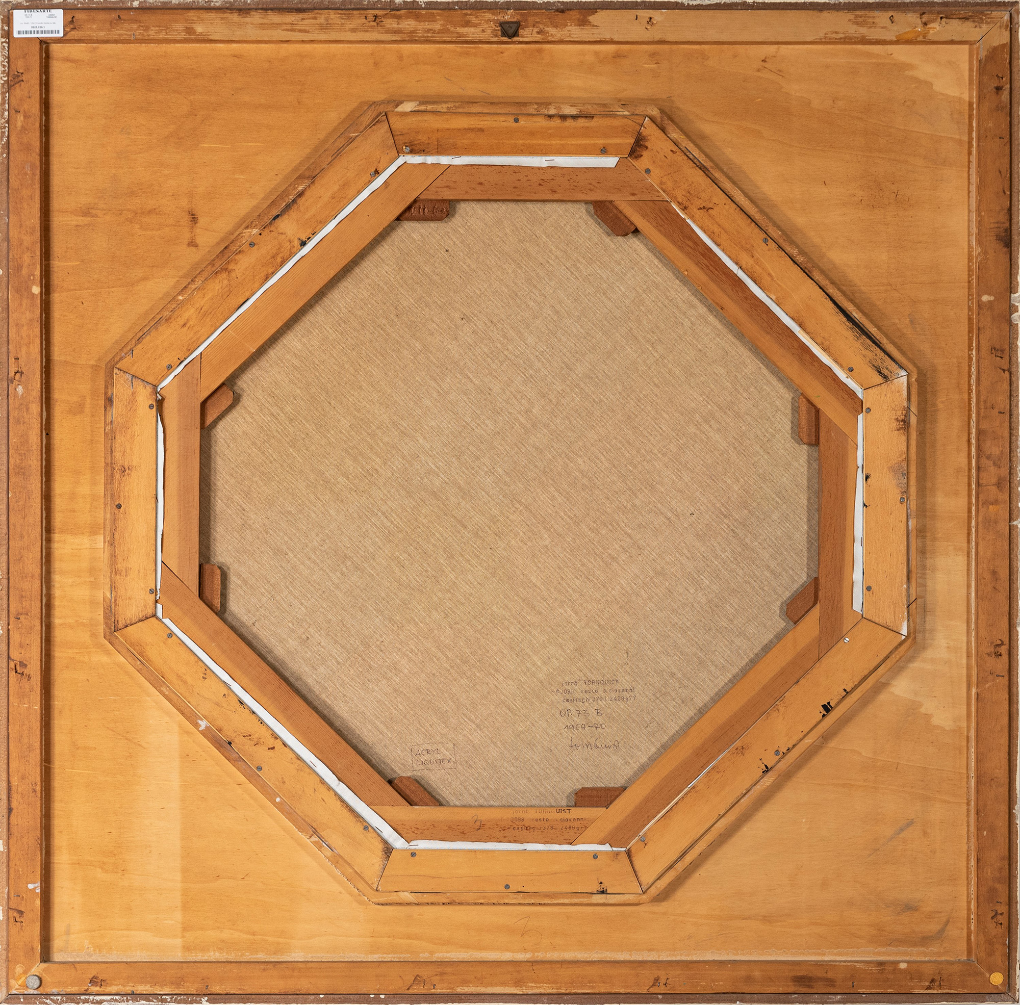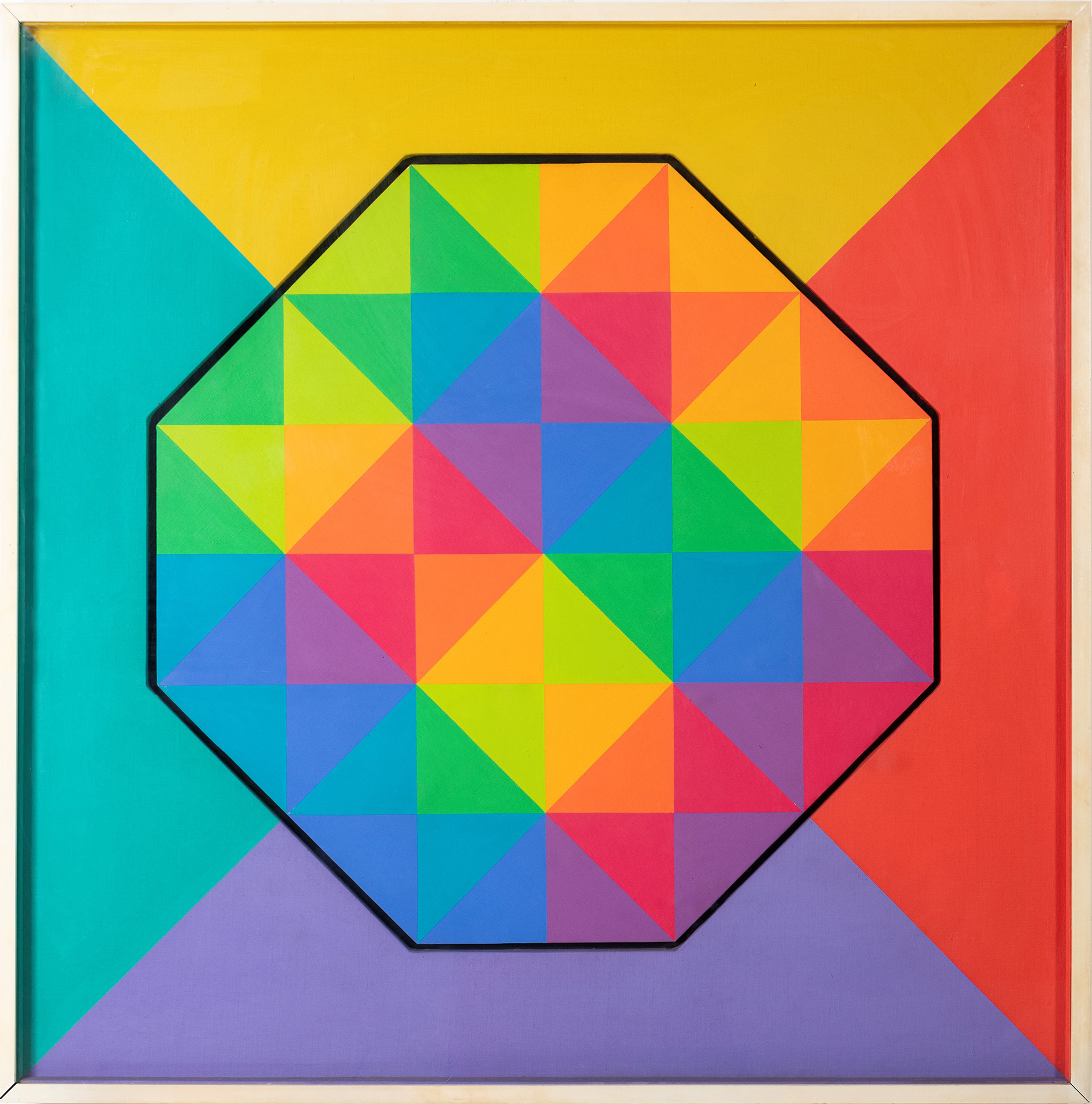 acrilici liquitex su tela sagomata ottagonale entro tavola dipinta
