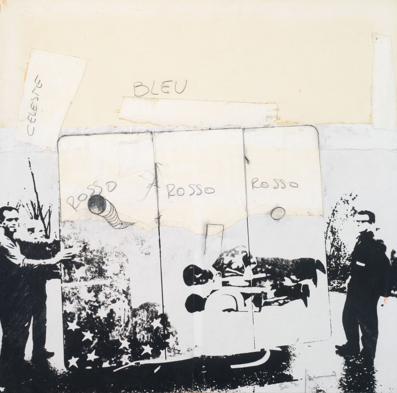Mario Schifano Homs 1934 - Roma 1998 Senza titolo, 1968 Collage su stampa fotografica, cm. 76,5x78 Firma in basso a destra: Schifano. Al verso sul telaio: etichetta Studio Marconi, Milano, con n. 6. Certificato su foto Fondazione M.S. Multistudio, Archivio dell'opera pittorica di Mario Schifano, Roma, 18 ottobre 2007, con n. 68/56. Bibliografia: Studio metodologico riguardante la catalogazione informatica dei dati relativi alle opere di Mario Schifano presenti presso la Fondazione M. S. Multistudio. Vol. B)IV° Opere su carta 1955 - 1998, Università degli studi di Genova, 2007, p. 53, n. 68/056.