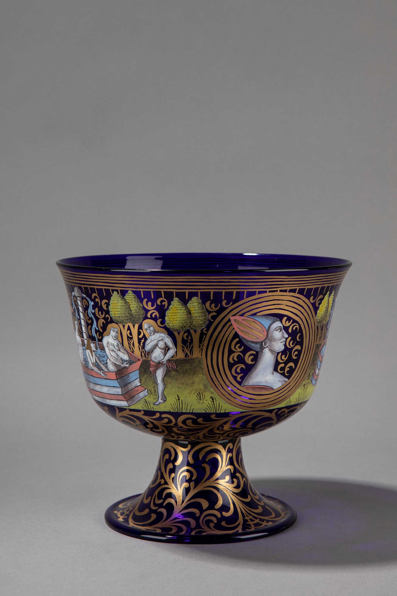 in vetro dipinto. Firma sotto la base.in vetro dipinto. Firma sotto la base.