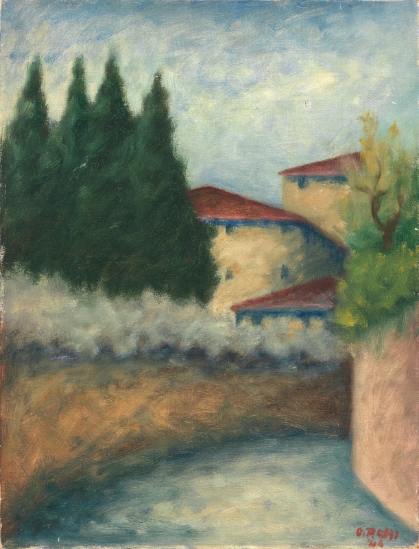 Firma e data in basso a destra: O. Rosai / 46. Al verso sulla tela: dichiarazione di autenticità di Ugo Galetti; sulla tela e sul telaio: timbro Ugo Galetti / Milano.