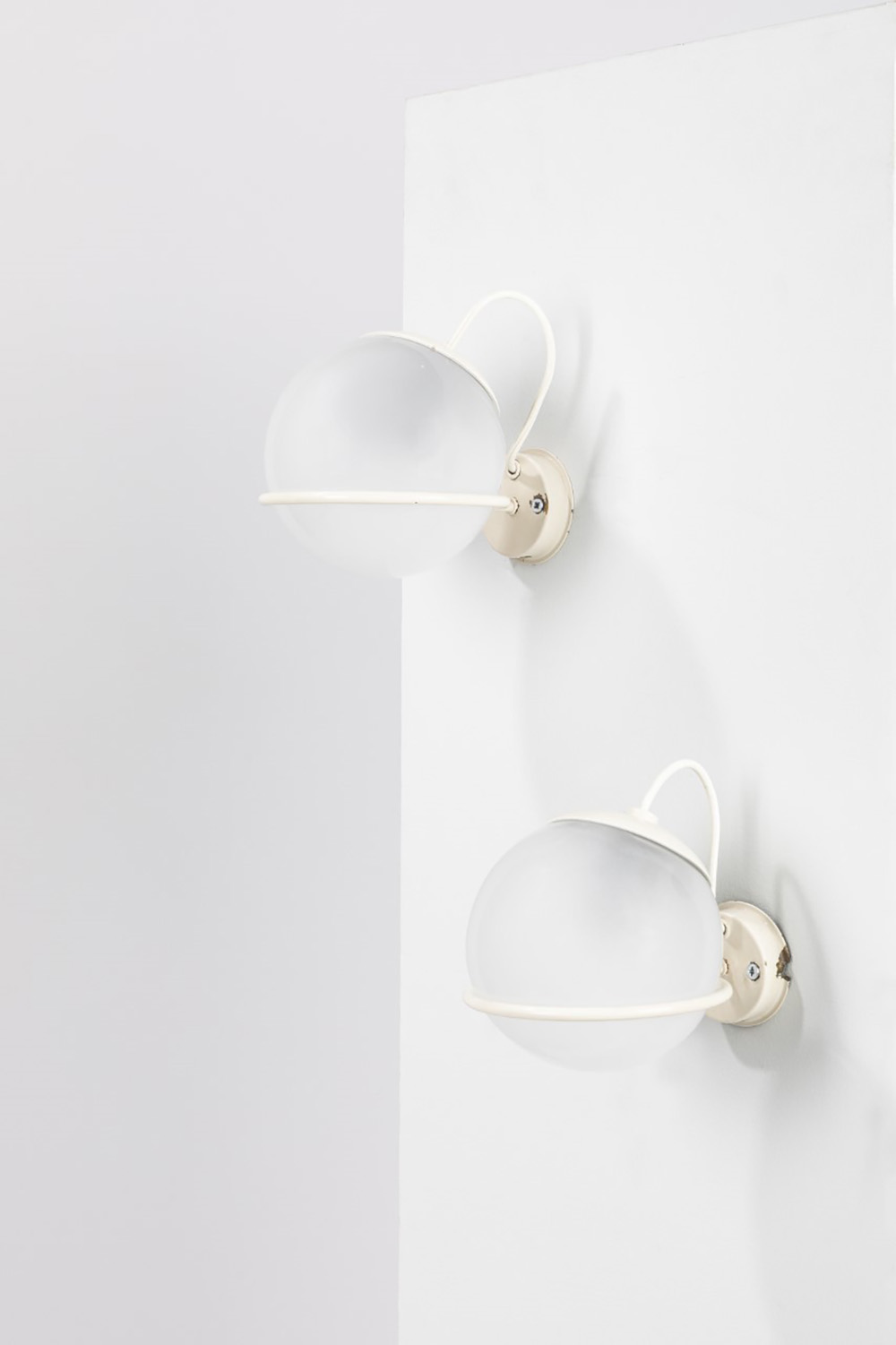 Diffusori non coevimodello 238/1, in metallo laccato bianco e diffusori in vetro.