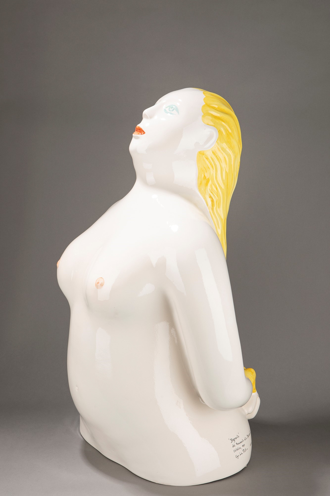 Firmata e numerata.busto femminile in ceramica modellata a colaggio.