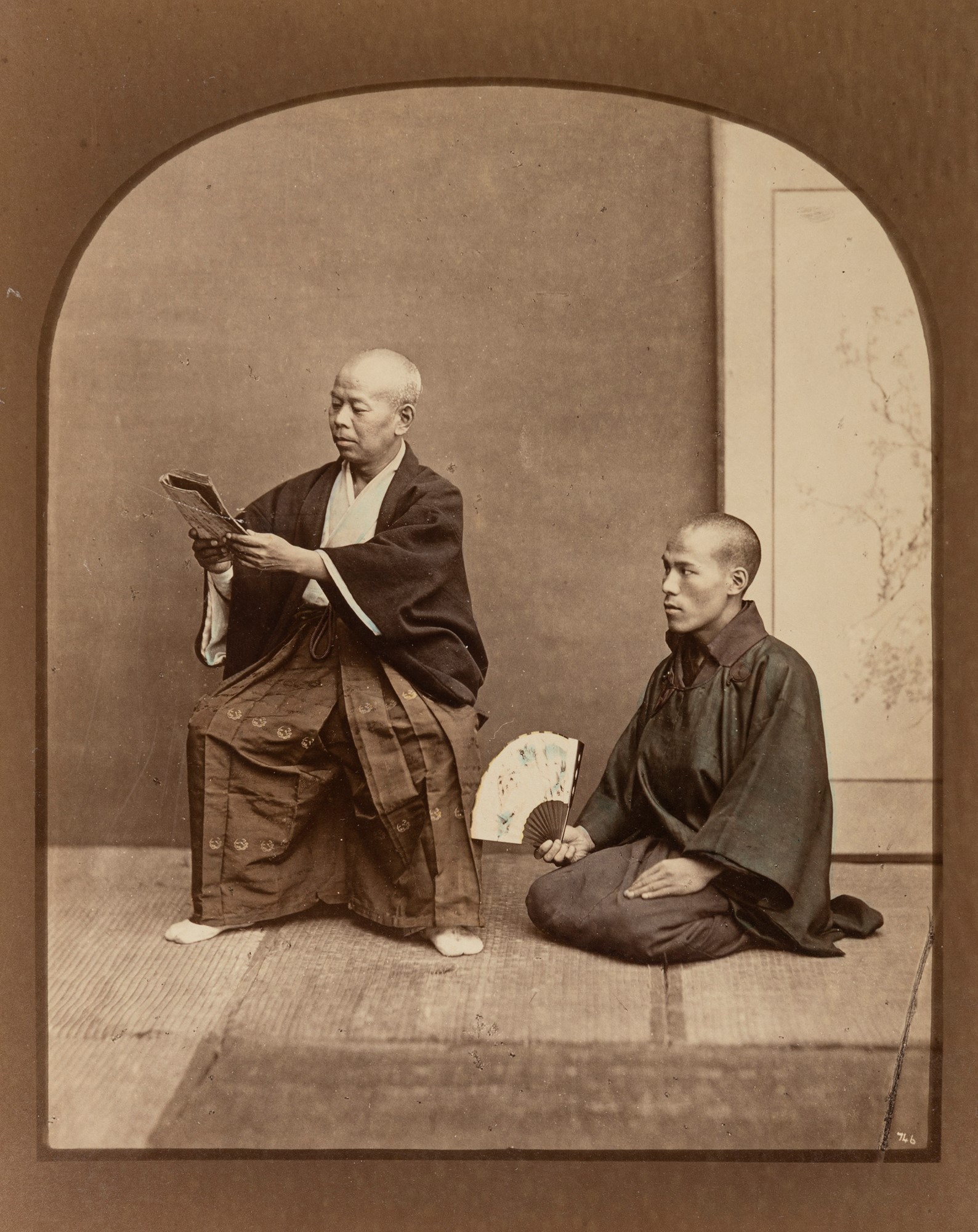 Raimund Von Stillfried (attribuito a) (1839-1911) - Senza titolo (Notabile con giornale e suo servitore con ventaglio), 1870s
