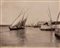 Félix Bonfils (1831-1885) - Groupe de barques à voiles remontant le Nil ; Cour et colonnade de la mosquèe El-Argharar, avec ètundians, 1880s