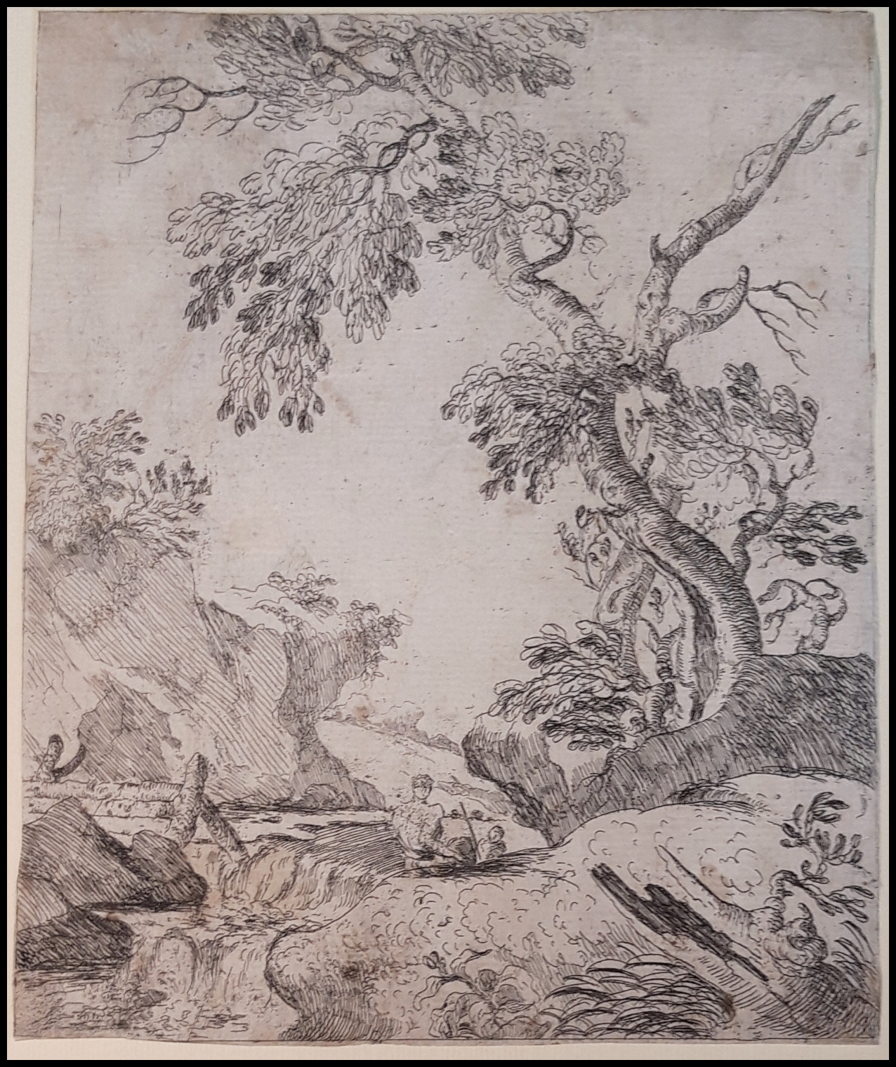 Giovanni Francesco Grimaldi (1606-1680): ALBERO CONTORTO E PICCOLA CASCATA