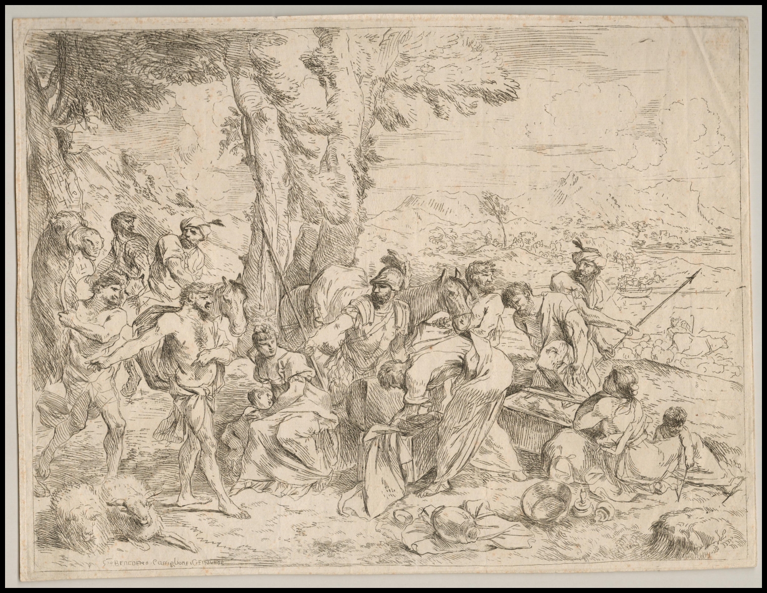 Giovanni Benedetto Castiglione (1609-1664): RACHEL CHE NASCONDE GLI IDOLI DI LABANO