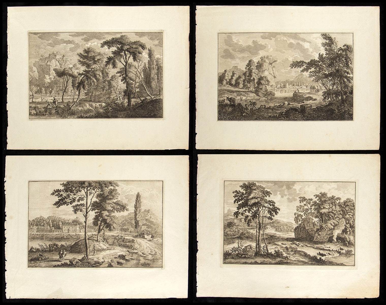 Anonimo incisore di del XVII secolo: LOTTO DI 4 PAESAGGI