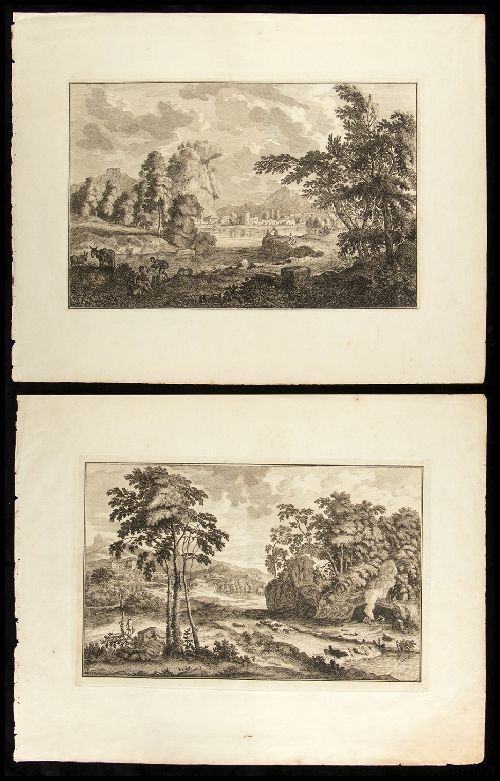 Belle, ben inchiostrate incisioni su carte vergellate. In generale in ottimo stato, salvo leggere ossidazioni. Un foglio presenta un strappo al margine, riparato al verso.