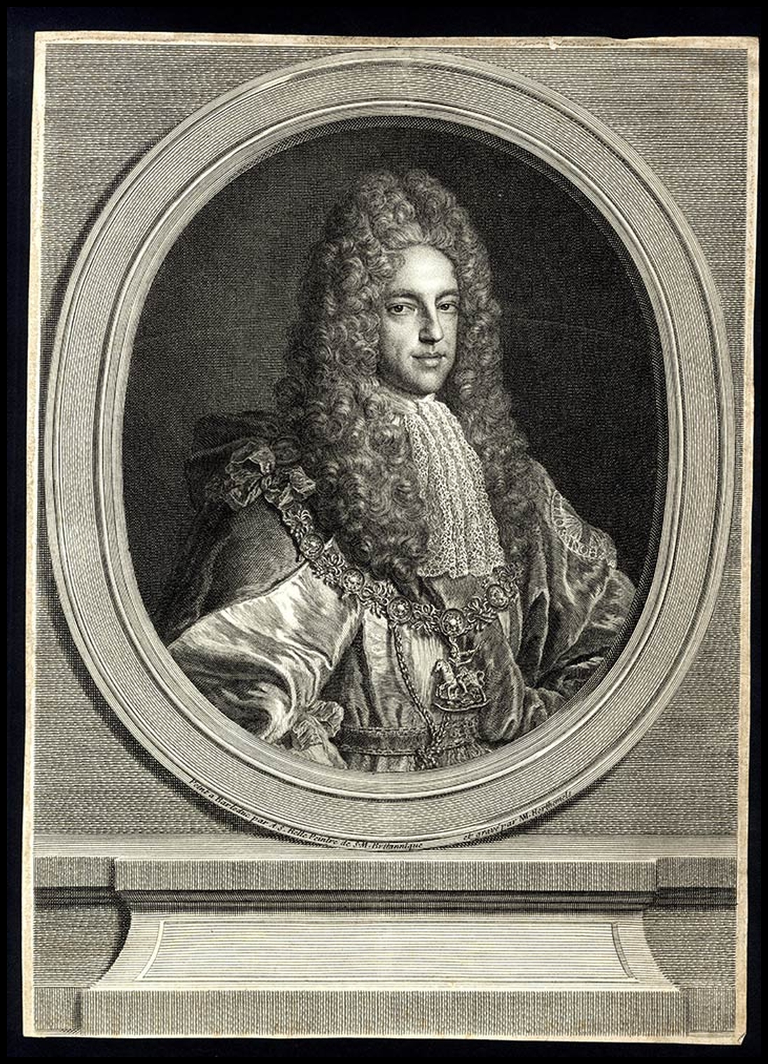 Ritratto del Principe Stuart detto The Old Pretender, a mezzobusto in ovale, indossando il grande collare dell’Ordine della Giarrettiera; 1714 Parigi