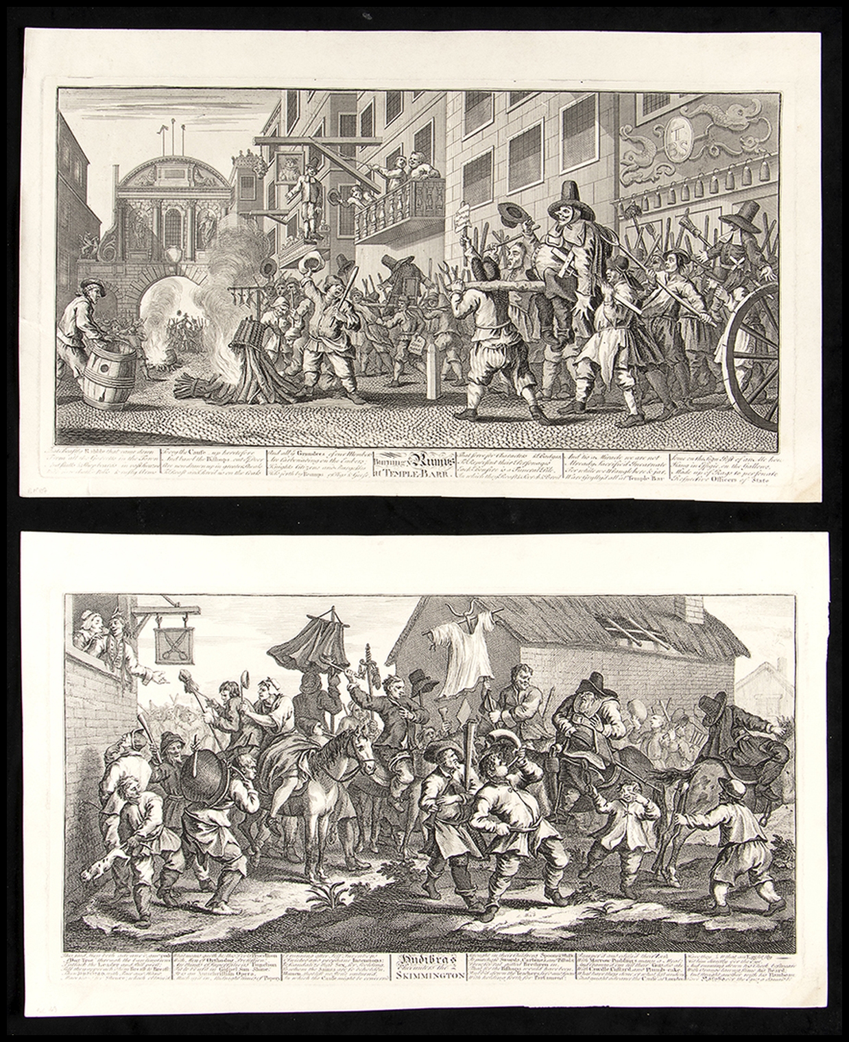 William Hogarth (1697-1764): HUDIBRAS ENCOUNTERS THE SKIMMINGTON / BURNING YE RUMPS AT TEMPLE BARR