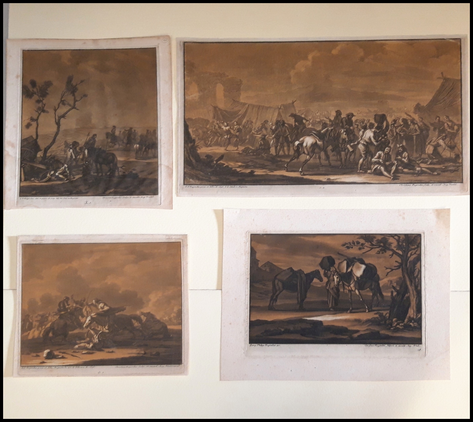 Lotto di quattro incisioni dalla serie Operazioni militari e scene di guerra 1740 ca.