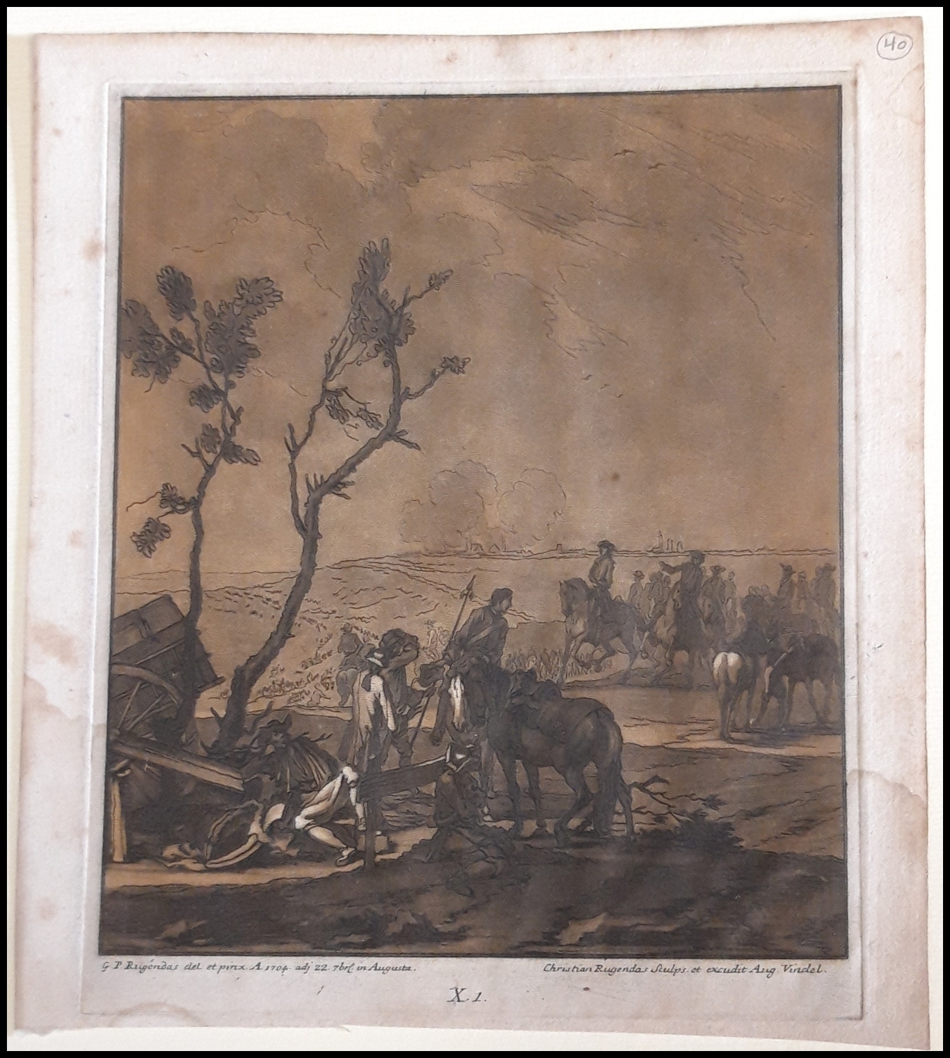 Christian Rugendas (1708-1781) da Georg Philipp Rugendas: LOTTO DI QUATTRO INCISIONI DALLA SERIE OPERAZIONI MILITARI E SCENE DI GUERRA 1740 CA.