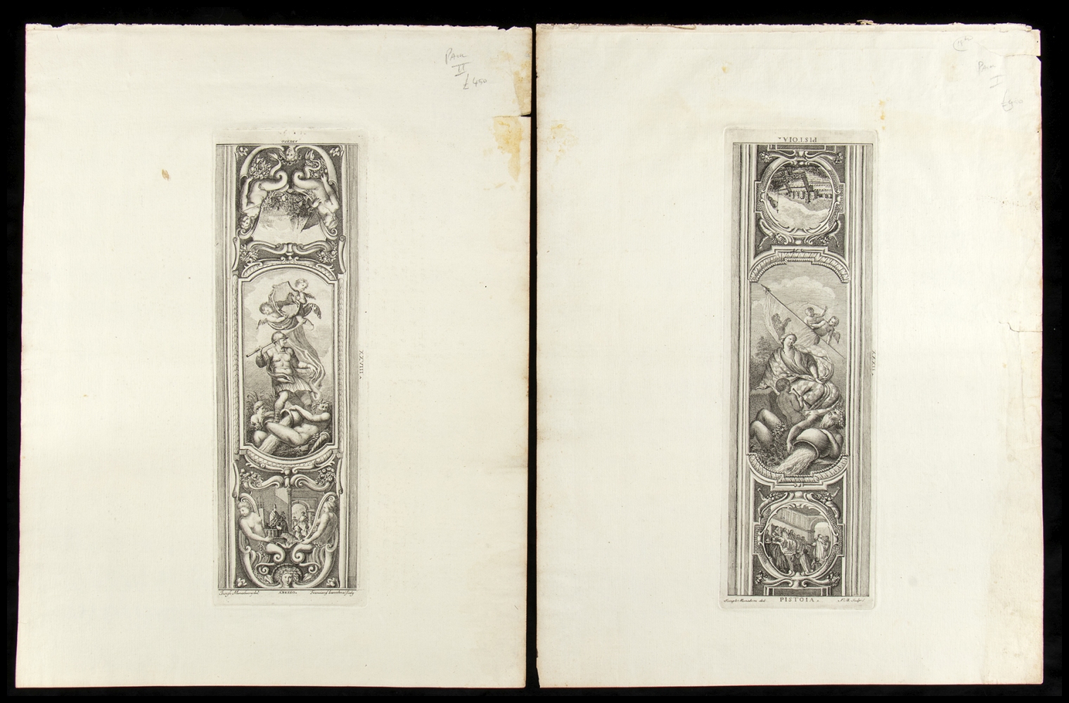 Francesco Bartolozzi (1728-1815) ed altro (N. M.) da Giuseppe Menabuoni: "AREZZO" E "PISTOIA"