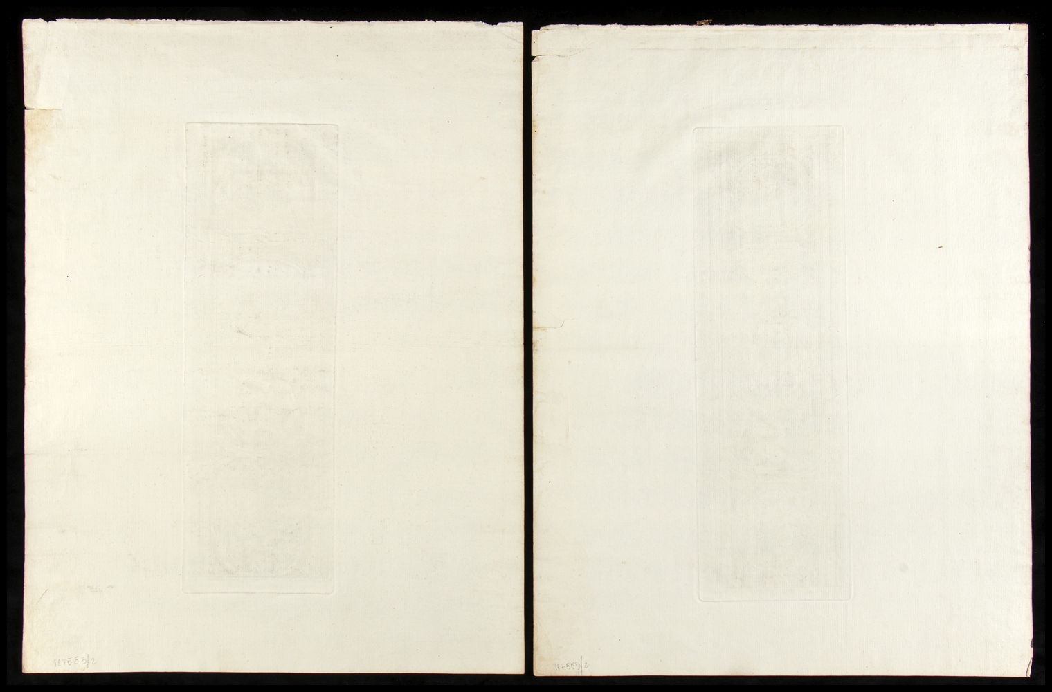 Fresche e acute impressioni stampate su carte vergellate con filigrane. Esemplari marginois. Strappi su margini destra. Bruniture dei bordi.