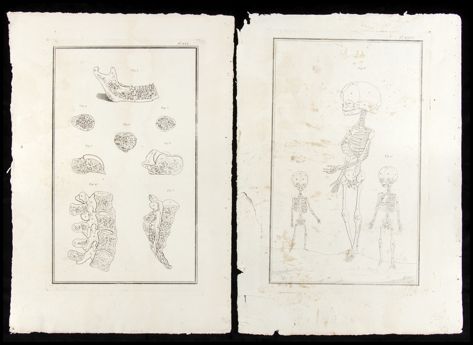Lotto di 2 fogli da un atlante anatomia umana, XVIII secolo