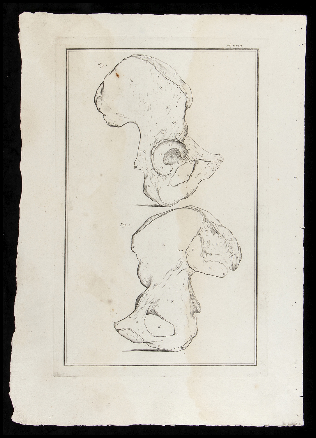 Lotto di 3 fogli da un atlante anatomia umana, XVIII secolo