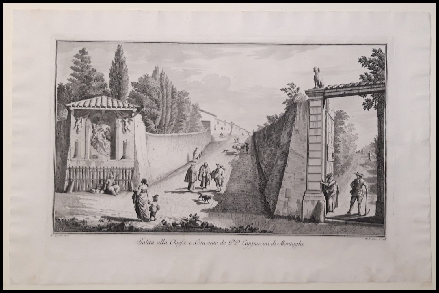Marco Antonio Corsi (attivo a Firenza nella seconda metà del XVIII secolo) da Giuseppe Zocchi (1716-1767) : SALITA ALLA CHIESA E CONVENTO DEI PADRI CAPPUCCINI DI MONTUGHI, 1744
