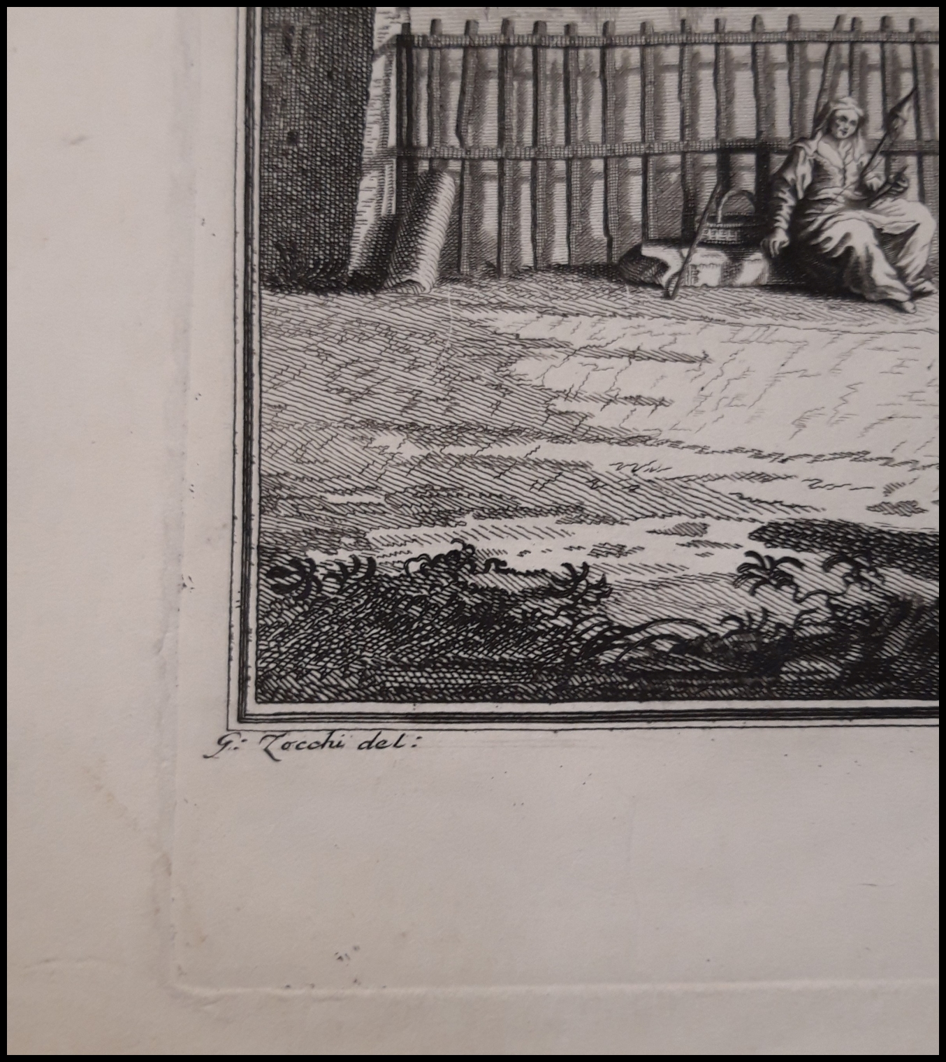 Dalla serie Scelta di XXIV vedute delle principali contrade, piazze, chiese e palazzi della città di Firenze, disegnate da Giuseppe Zocchi (c.1711-1767) su commissione del Marchese Andrea Gerini (1691-1766), e incise da alcuni dei più importanti Artisti italiani dellepoca. Stato unico. Goerg n. 57.