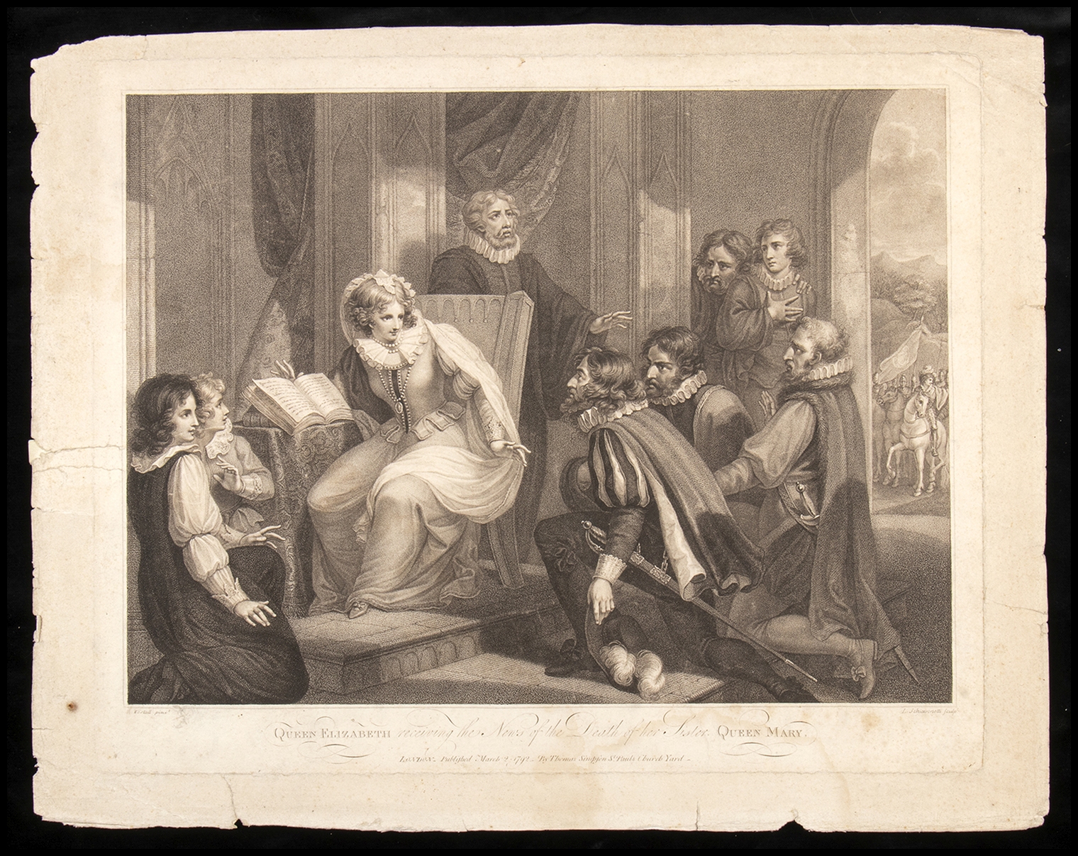 Niccolò Schiavonetti (1771-1813) da Richard Westall (1765-1836): LA REGINA ELISABETTA RICEVE LA NOTIZIA DELLA MORTE DELLA REGINA MARY I, 1792