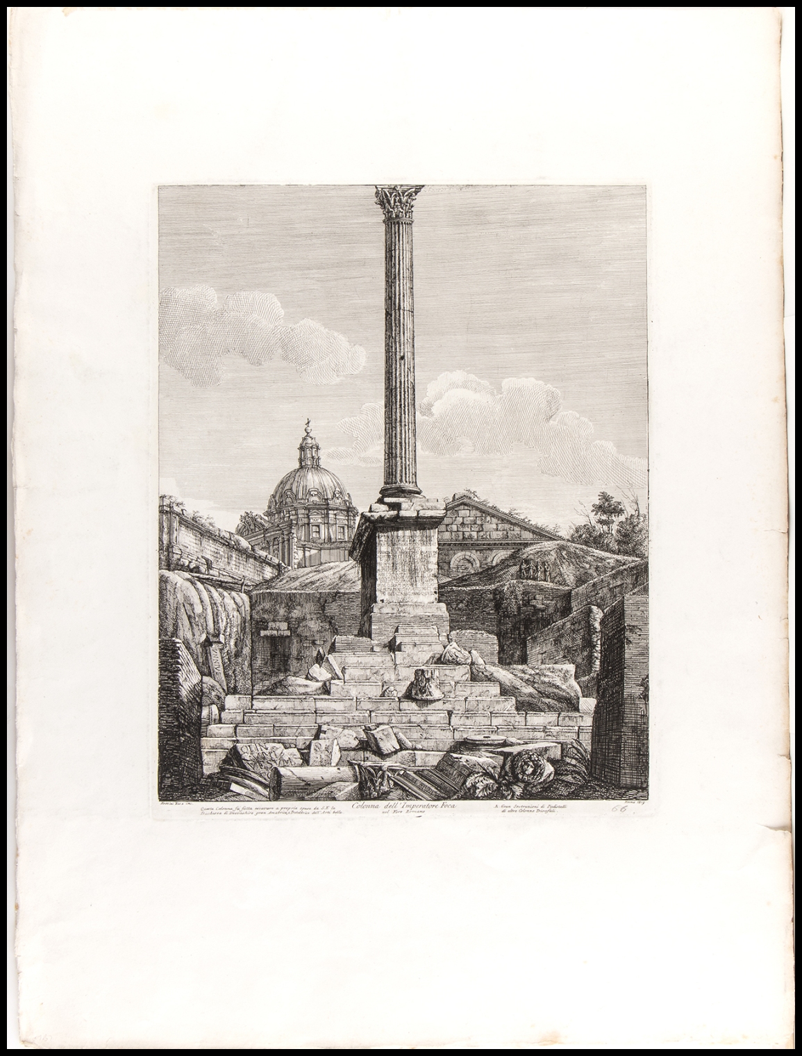 Luigi Rossini (1790-1857): COLONNA DELL'IMPERATORE FOCA NEL FORO ROMANO, 1819