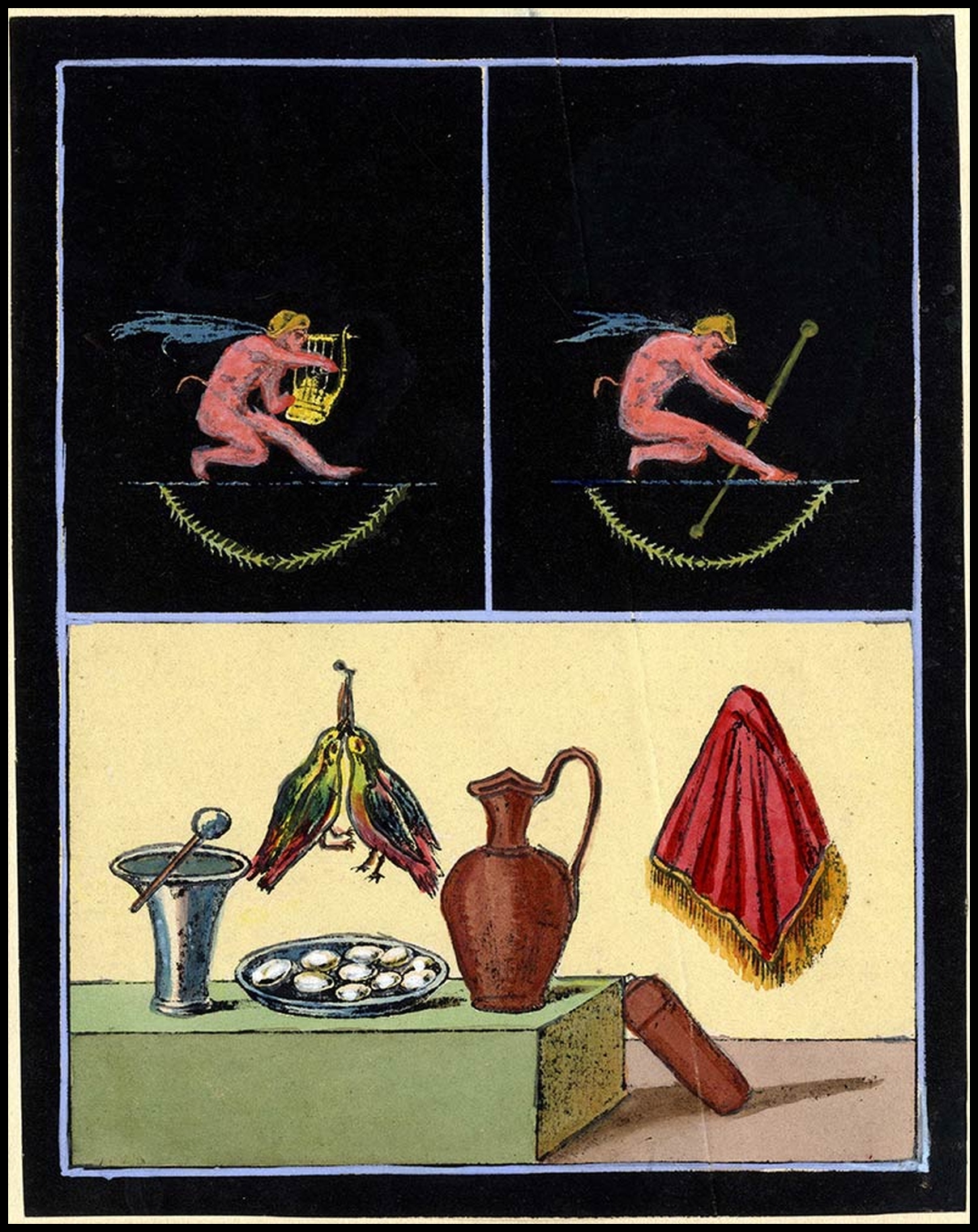 Vari soggetti tratti dalle Ville pompeiane, nature morte e grottesche. 1810 ca.