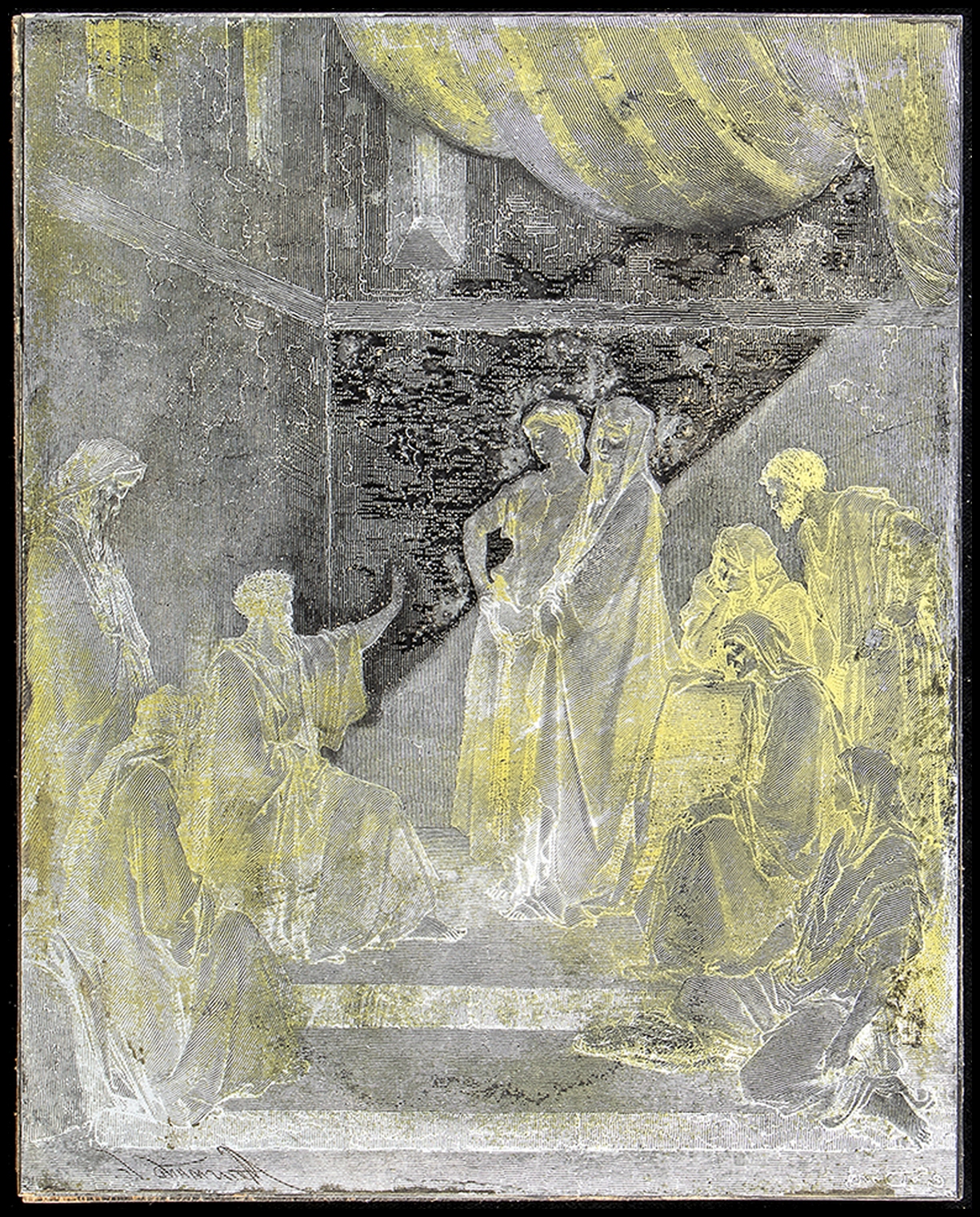 Rara matrice per un’illustrazione di Sacra Bibbia, con la firma di G. Doré e incisore Gusmand. Buono stato.