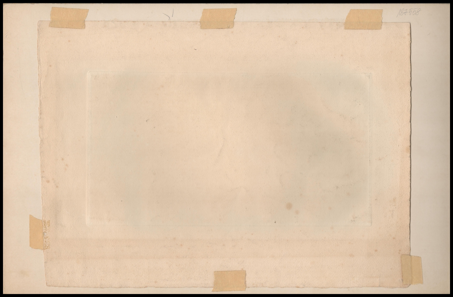 Fresca impressione, stampata su carta vergellata con filigrana. Larghi margini. Applicata su passepartout moderno con nastro al verso.