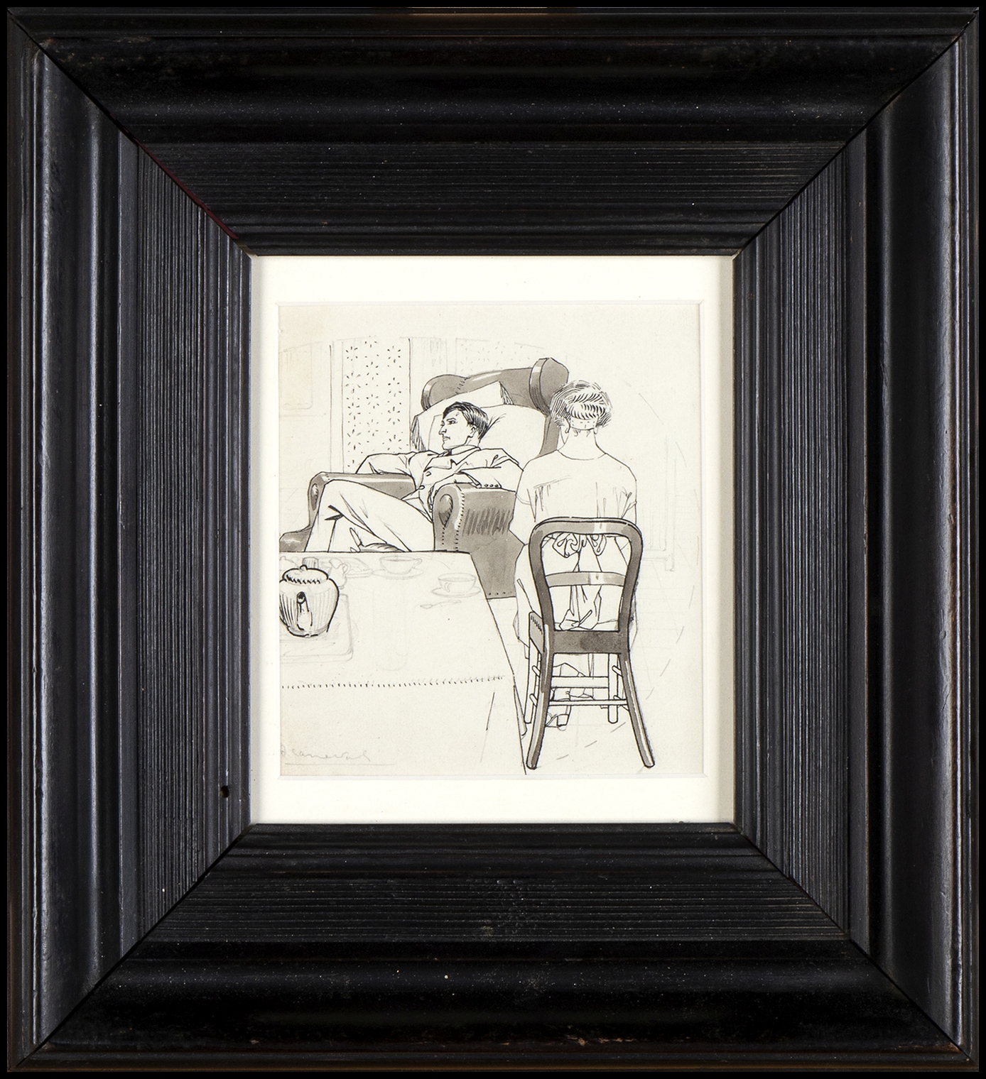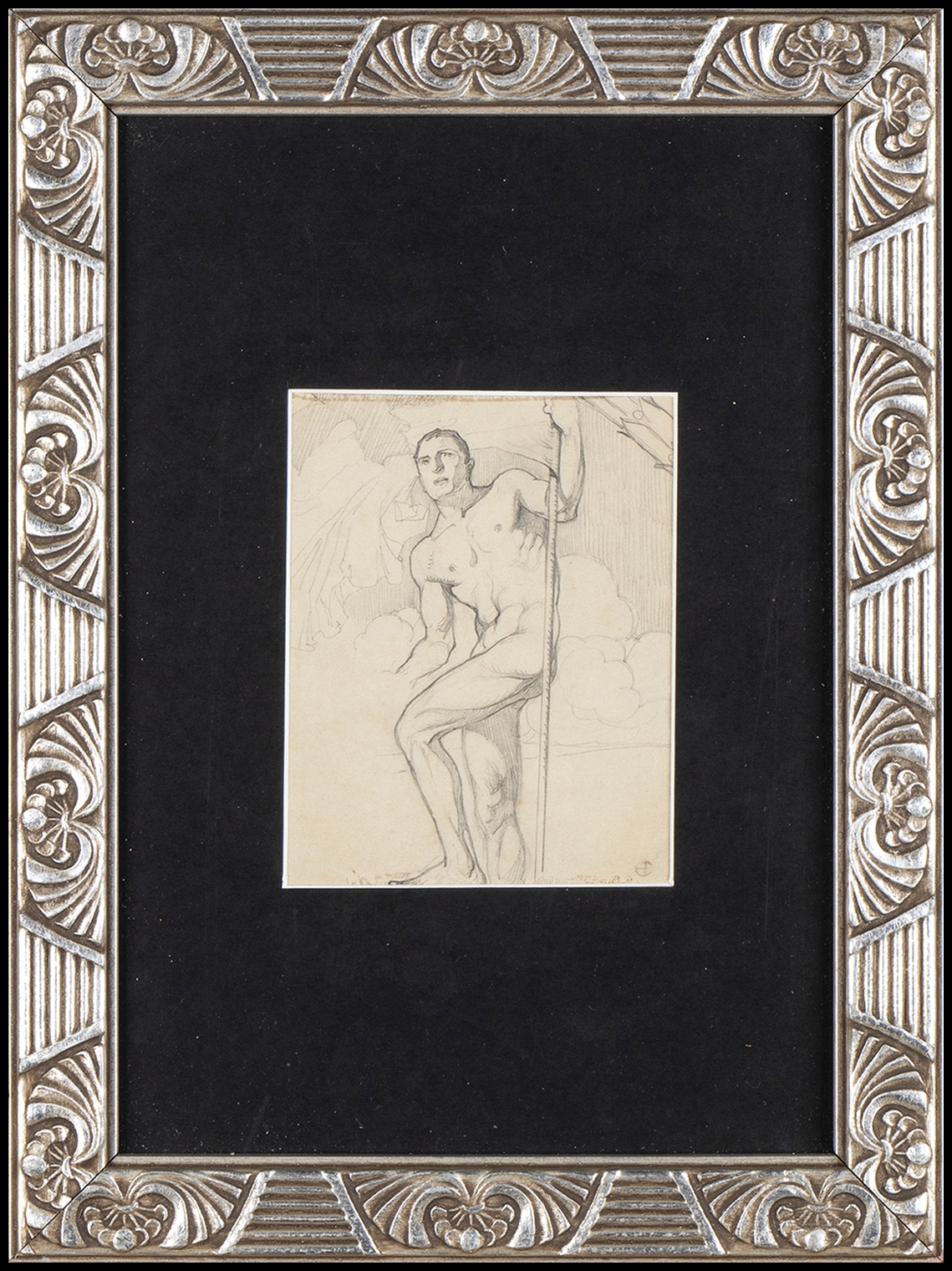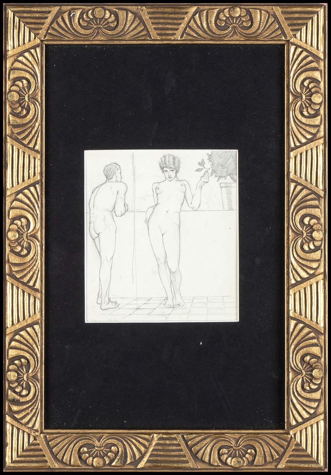 Lotto di 9 disegni in stile Art Nouveau. Alcuni siglati AC, due con firma non decifrata.