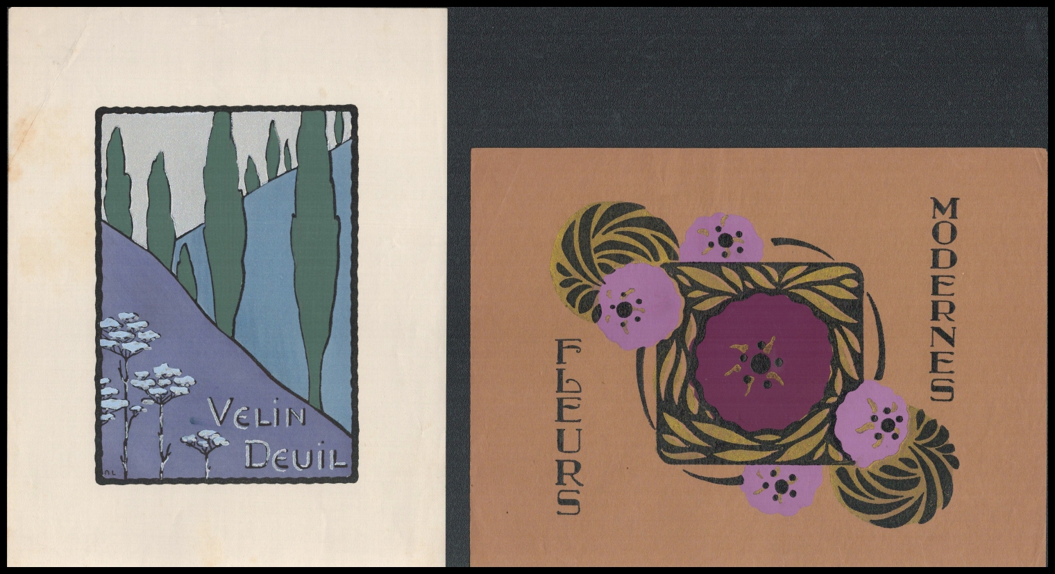 Tre bozzetti, probabilmente disegni preparatori per le locandine in stile Art Nouveau. Due siglati A.L.