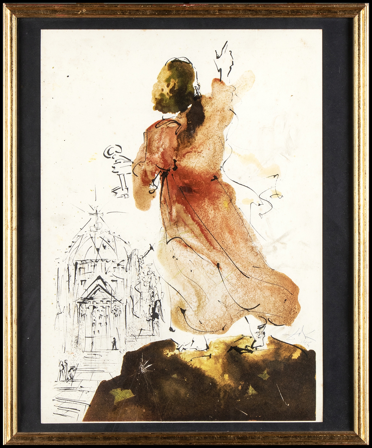 Una tavola tratta da Biblia Sacra vulgatae editionis, pubblicata da Rizzoli a Milano nel 1967. Firmata in lastra in basso a destra Dalì 1964.