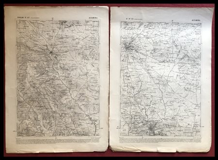 Su due fogli. Carta non vergata, con timbro a secco di Istituto Topografico Militare. Buone condizioni salvo lievi segni di uso sui margini.