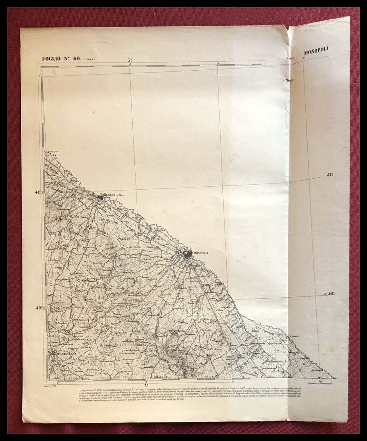 Foglio unico. Carta non vergata, con timbro a secco di Istituto Topografico Militare. Buone condizioni salvo lievi segni di uso sui margini.
