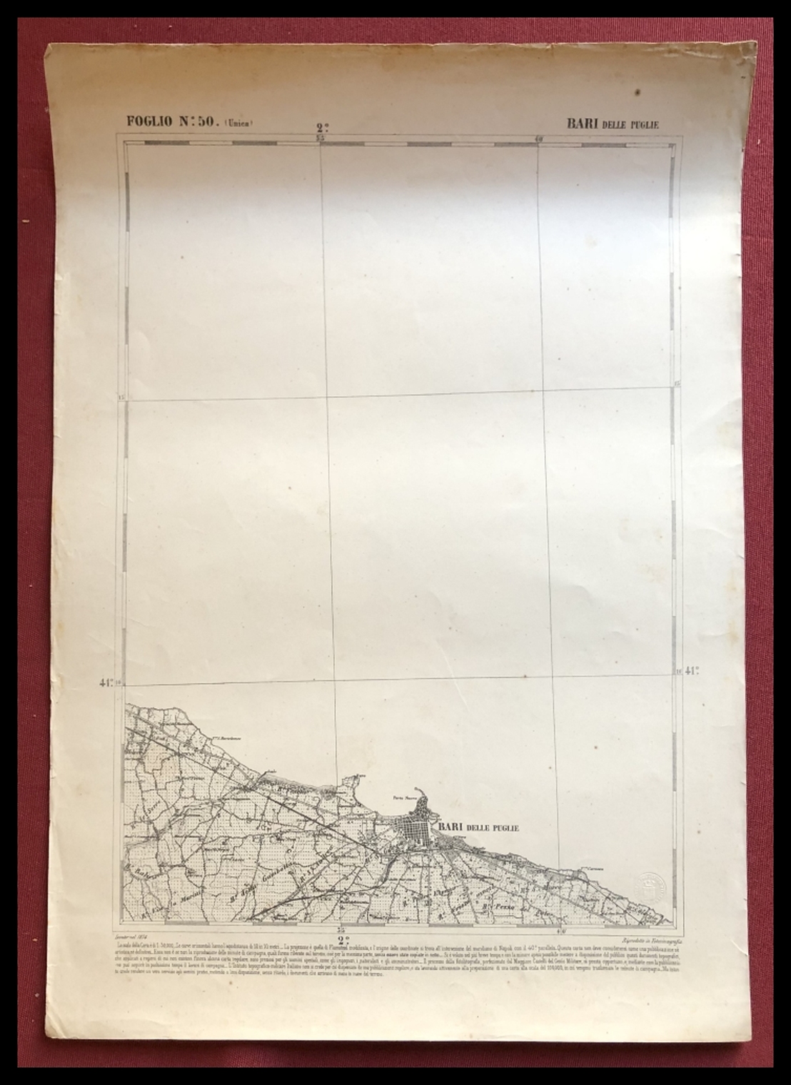 Foglio unico. Carta non vergata, con timbro a secco di Istituto Topografico Militare. Buone condizioni salvo lievi segni di uso sui margini.