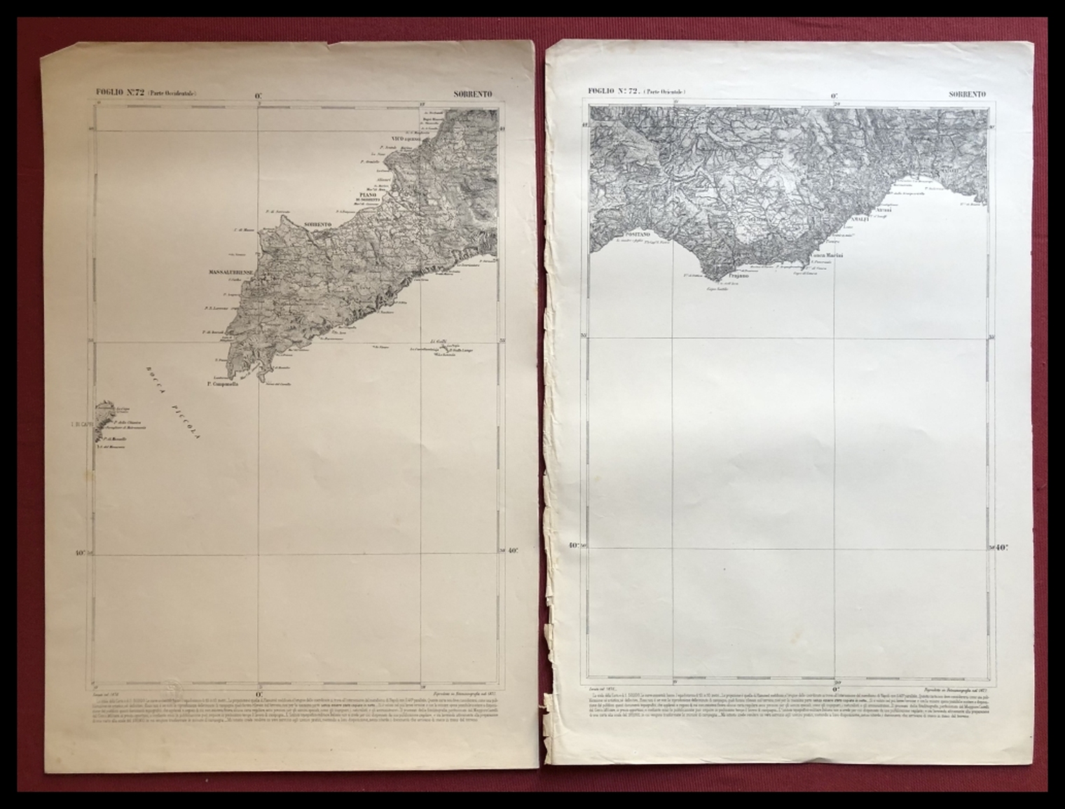 Su due fogli. Carta non vergata, con timbro a secco di Istituto Topografico Militare. Buone condizioni salvo lievi segni di uso sui margini.