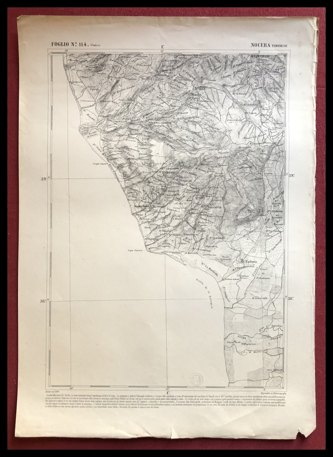 Foglio unico. Carta non vergata, con timbro a secco di Istituto Topografico Militare. Buone condizioni salvo lievi segni di uso sui margini.