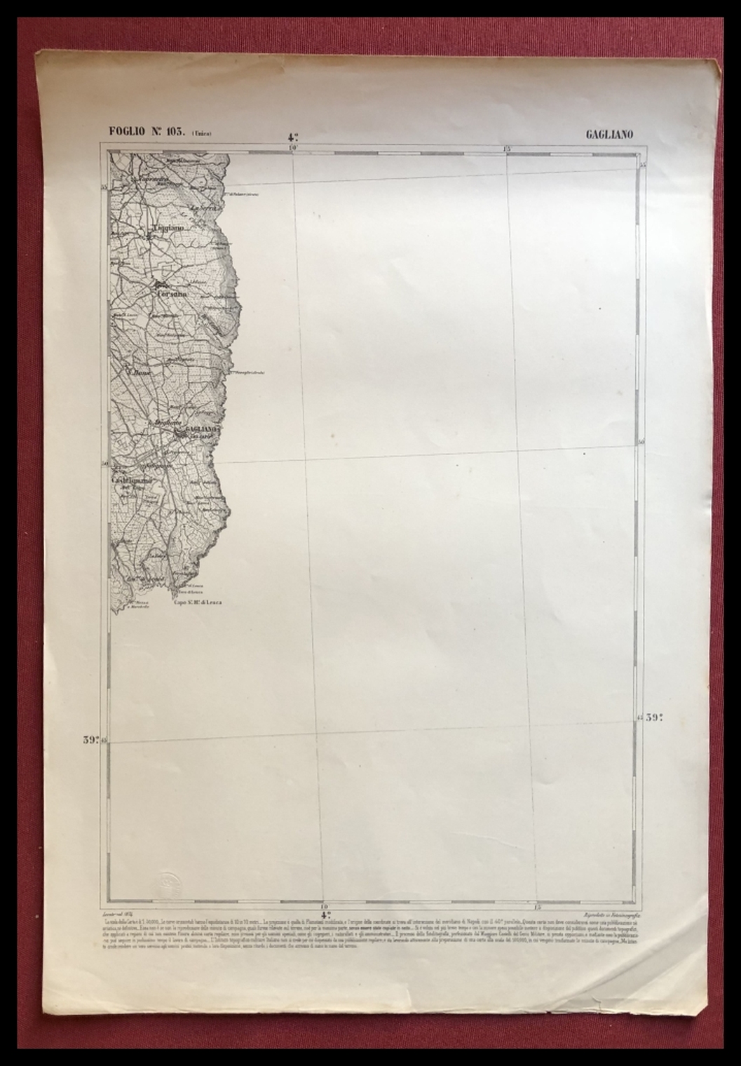 Foglio unico. Carta non vergata, con timbro a secco di Istituto Topografico Militare. Buone condizioni salvo lievi segni di uso sui margini.