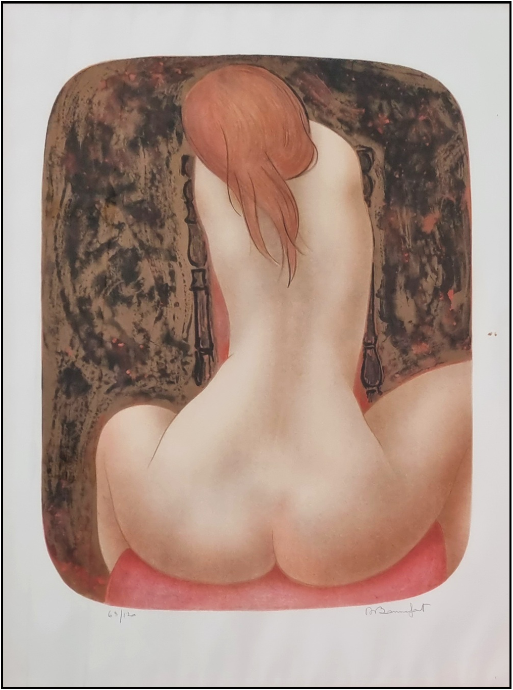BONNEFOIT ALAIN Parigi 1937 "Nudo di schiena" Litografia cm 56x76 del 1983. Firmata sul fronte in basso a destra, tiratura 63/120 a sinistra. Certificato di garanzia a cura di Edizioni d'arte Vasciarelli.