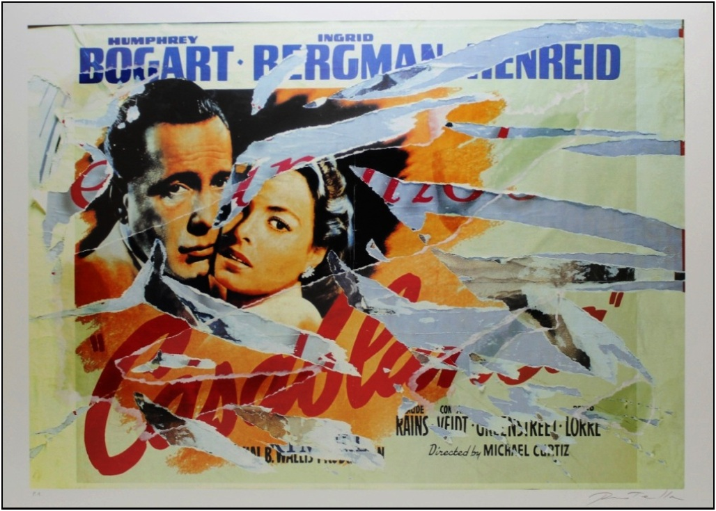 ROTELLA MIMMO Catanzaro 1918 - Milano 2006 "Casablanca" Multiplo, decollage, strappi di manifesto su supporto serigrafico su cartoncino cm 100x70 del 2000/2009. Firmato sul fronte in basso a destra, tiratura P.A. a sinistra. Opera pubblicata sul catalogo "Mimmo Rotella multiplo decollage", Silvana editore, a pag.72.