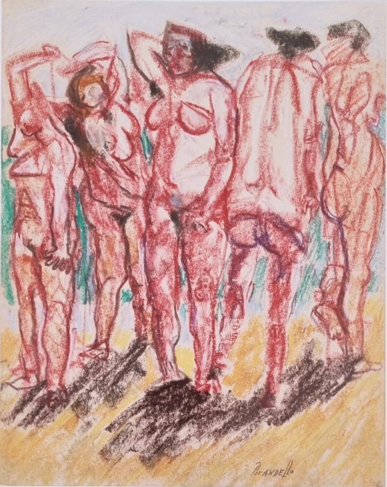 PIRANDELLO FAUSTO CALOGERO Roma 1899 - 1975 "Cinque bagnanti" Pastelli su carta cm 22x28 del 1965. Firmato sul fronte in basso a destra. Certificato di archiviazione a cura della Fondazione Fausto Pirandello. Certificato di autenticità a cura della Galleria Fidia.