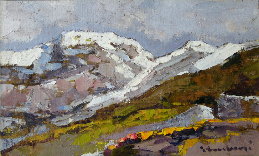 Lot 49 | Ambrosi Elmo " Cime trentine innnevate " Olio su tela/cartone cm 25,8 x 15,7...
