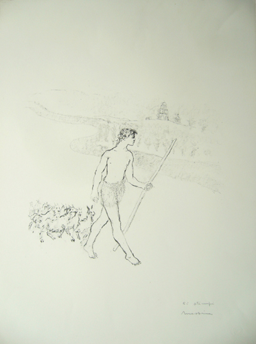 Messina Francesco " Meliboeus cacciato dai dolci campi patri" Litografia cm 46 x 60 Firmata e dicitura : \" si stampi \" in basso a destra, timbro a secco Spiralearte Milano - Prov. COLLEZIONE PRIVATA