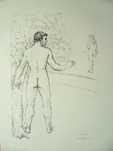 Messina Francesco " Tityrus abbandonato da Galatea " Litografia cm 46 x 60 Firmata e dicitura : " si stampi " in basso a destra, timbro a secco Spiralearte Milano - Prov. COLLEZIONE PRIVATA