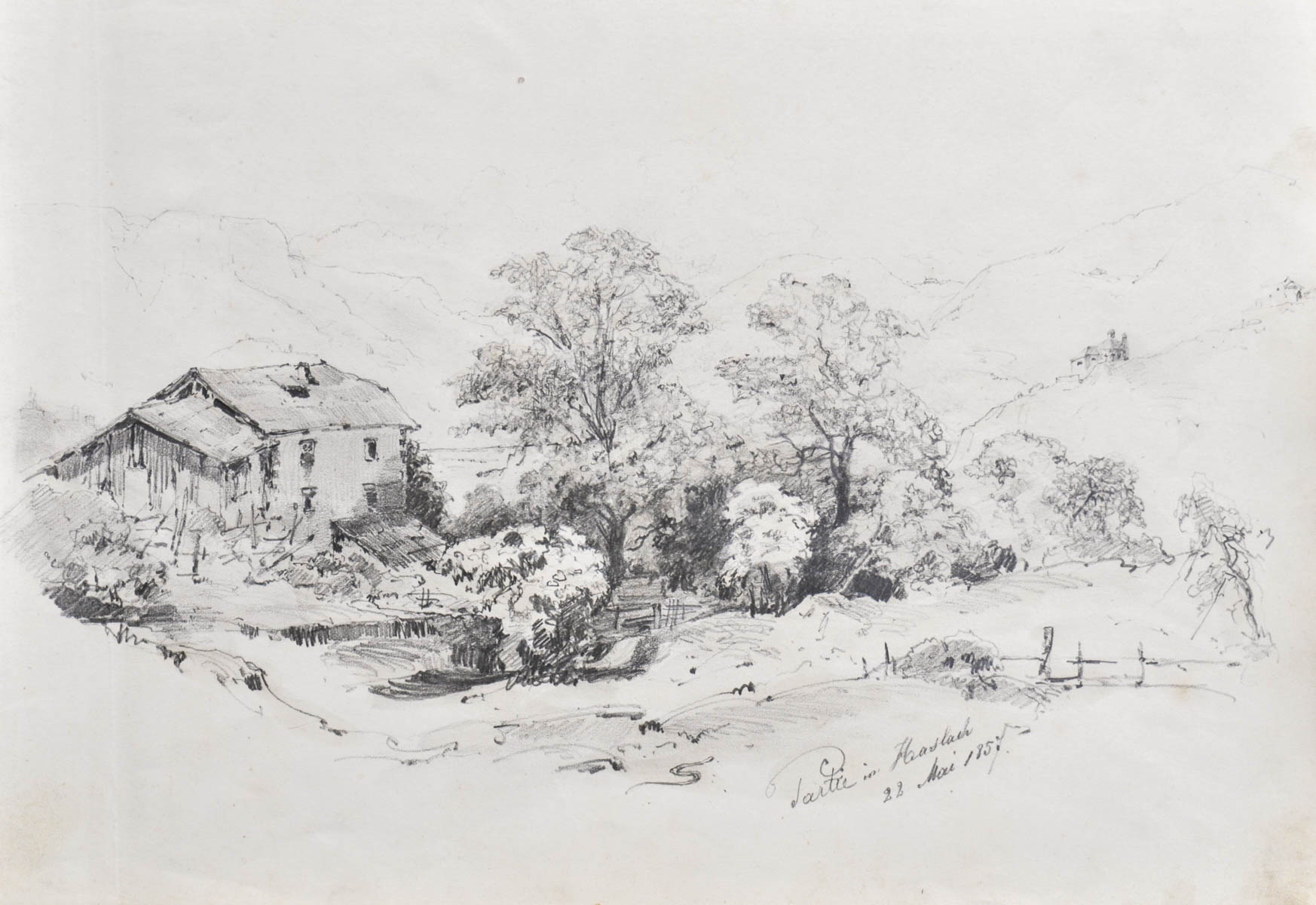 Karl Vinzenz Moser (Bozen/Bolzano 1818 - 1882) Paesaggio a Aslago/Bolzano, 1857;Matita, 20,8 x 29,6 cm