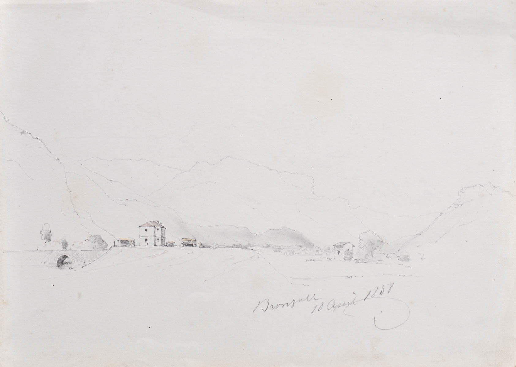 Karl Vinzenz Moser (Bozen/Bolzano 1818 - 1882) Dintorni di Bronzolo, 1858;Matita, 23,3 x 32,3 cm