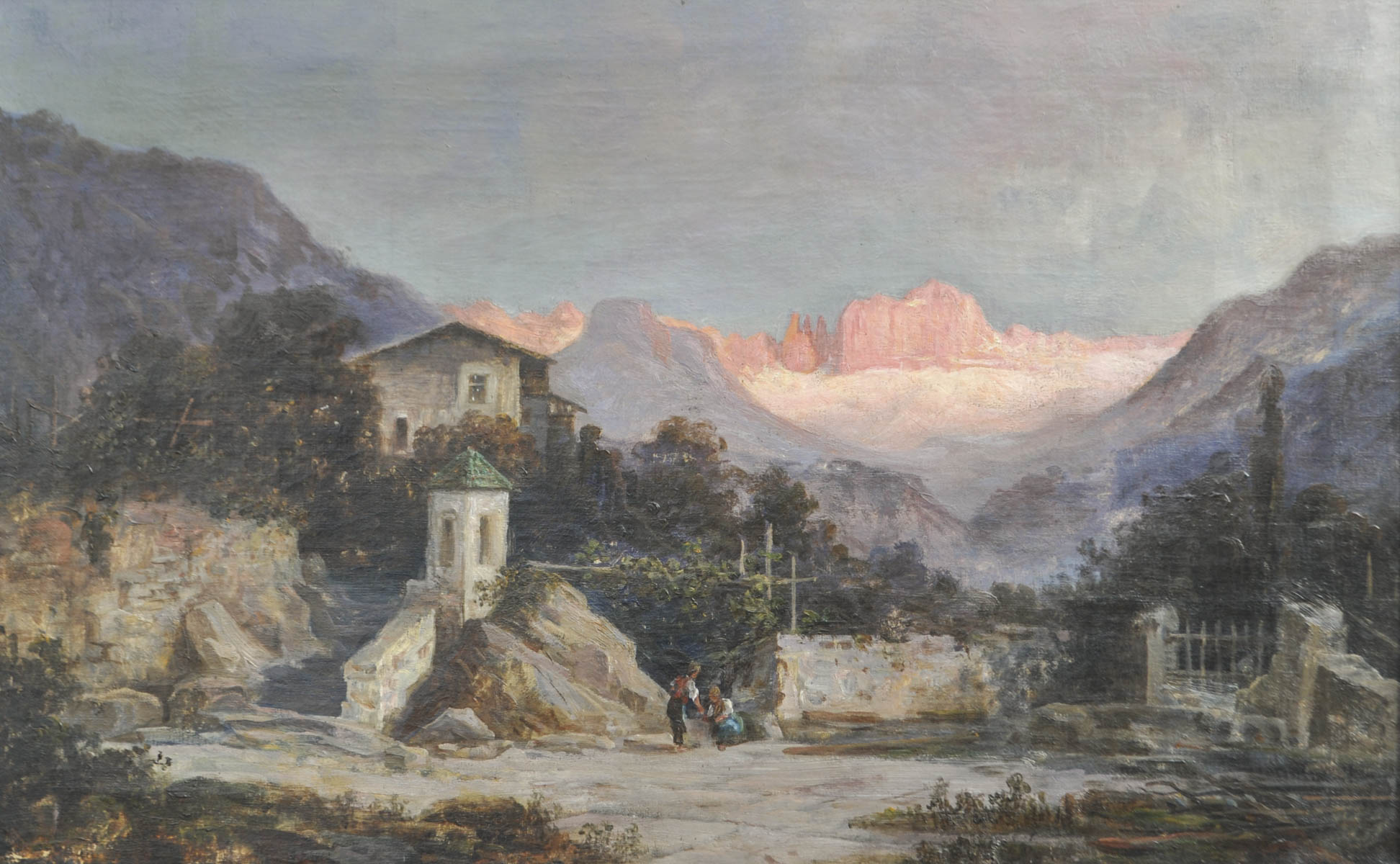 Ignaz Stolz d. Ä. (Tramin/Termeno 1840 - Bozen/Bolzano 1907) S. Maddalena con Catinaccio;Olio su tela, 44 x 70 cm, in cornice