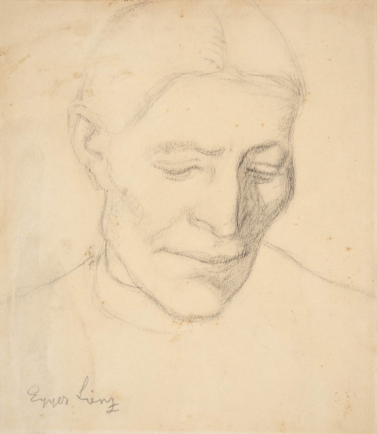 Albin Egger-Lienz (Stribach bei Lienz 1868 - St. Justina bei Bozen 1926) Ritratto femminile - studio per la donna del dipinto "Kriegsfrauen", 1918;Matita, 25,6 x 22 cm