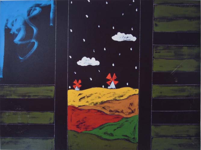 Festa Tano " finestra e mulini " acrilico su tela cm 80 x 60 anno 1985...