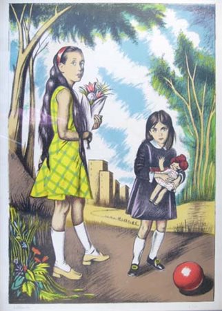 Sciltjan Gregorio " Passeggiata domenicale " Litografia cm 50 x 70 ANNO:1970 firmata e datata in basso a sinistra, tiratura a destra P.A, Prov. COLLEZIONE PRIVATA