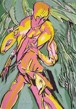 Brindisi Remo Base serigrafica ritoccata (retrouchè ) cm 50 x 70 firmata in basso a sinistra, timbro a secco Gall.Pace Prov.COLLEZIONE PRIVATA